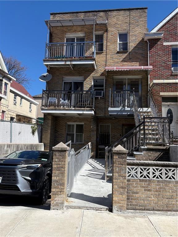 Newly built in 2001, Brick, 3 families, with 2 cars parking spaces, private driveway and car garage. This modern and solid structure with 3,225 sqfts was built with I beam, C joints and concrete floor, excellent sound proved, and with sprinkler system adding additional safety features to this new building. There are 3 separated heating units and hot water tanks. Each level with 3 bedrooms 1 bath. 2nd and 3rd floor with private balconies. Low property tax, great for investment and self use. It is close to R train, N Train and 8th Avenue