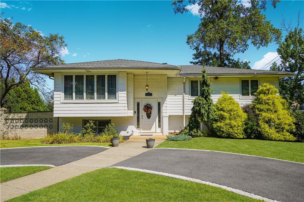 BEAUTIFUL SPACIOUS HI RANCH, SITUATED ON 105 X 110 PROPERTY.. ELEGANT LIVING ROOM, FORMAL DINING ROOM, DELIGHTFUL EAT IN KITCHEN, SLIDERS TO SPACIOUS DECK, OPEN FLOOR PLAN, AJACENT FAMILY ROOM, 3 BEDROOMS (PRIMARY BEDROOM HAS A NEW BATH 2 YEARS OLD) LOWER LEVEL HAS A DEN AND A 4TH BEDROOM & BATH, LAUNDRY ROOM, SLIDERS TO BACK YARD TWO CAR GARAGE.