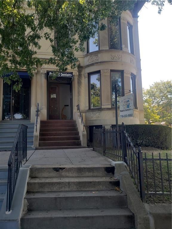 Corner Mixed-Use Brick Building and Limestone face. The upper level has 3 Bedrooms Apartment and a full Bathroom, Excellent Condition. The Mid Level has a Vacant Professional Office leads to the Back Yard and the Garage, The office can be use for Medical, Law firm, Day Care Center or other Professional Businesses..... Lower Level has a Doctor's Office. Private One Car Garage.
